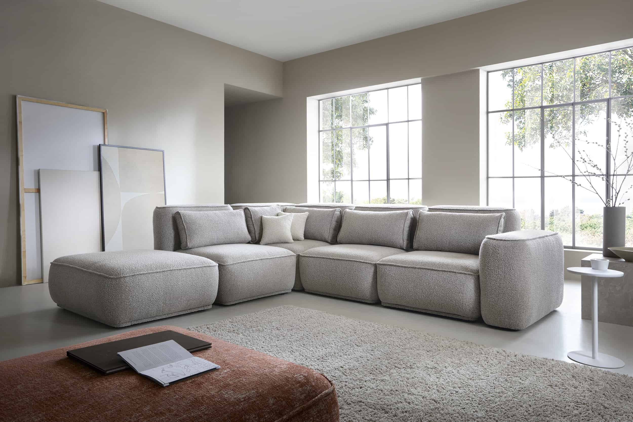 Loungesofaen er polstret på alle sider hvilket betyder at modulerne kan bruges fritstående i rummet.